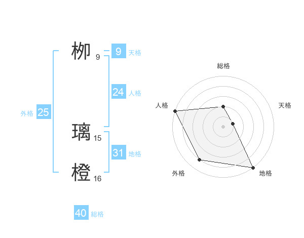栁 璃橙さんの総格は40画の2点!