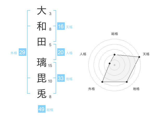 大和田 璃毘兎さんの天格は16画の5点!