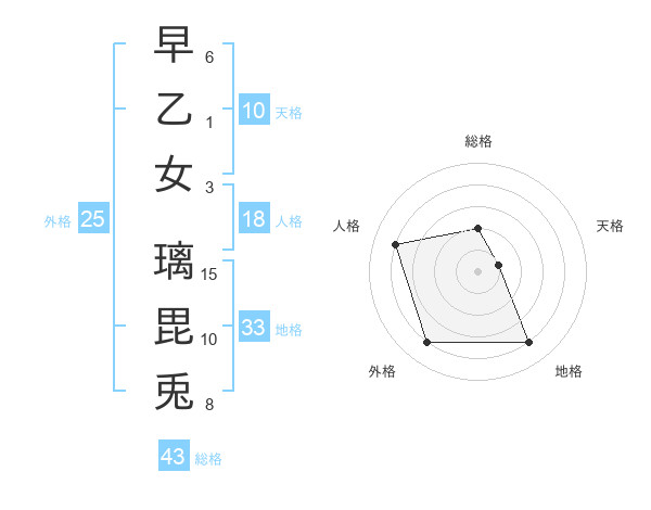 早乙女 璃毘兎さんを姓名の画数から五運を鑑定