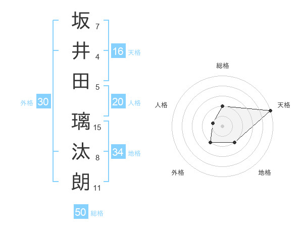 坂井田 璃汰朗さんを姓名の画数から五運を鑑定