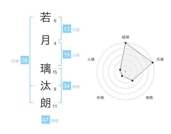 若月 璃汰朗さんを姓名の画数から五運を鑑定
