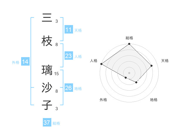 三枝 璃沙子さんを姓名の画数から五運を鑑定
