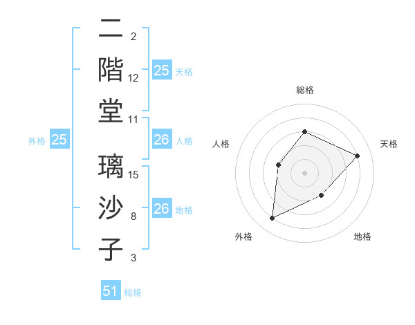 二階堂 璃沙子さんの天格は25画の4点!