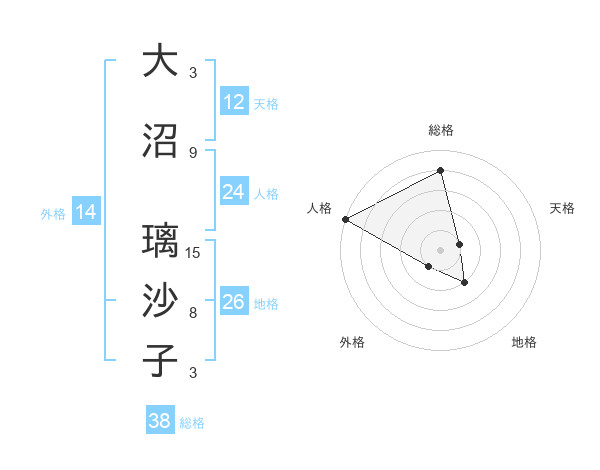 大沼 璃沙子さんを姓名の画数から五運を鑑定
