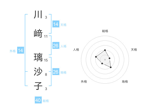 川﨑 璃沙子さんを姓名の画数から五運を鑑定