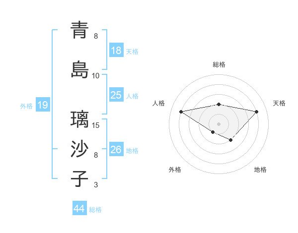 青島 璃沙子さんを姓名の画数から五運を鑑定
