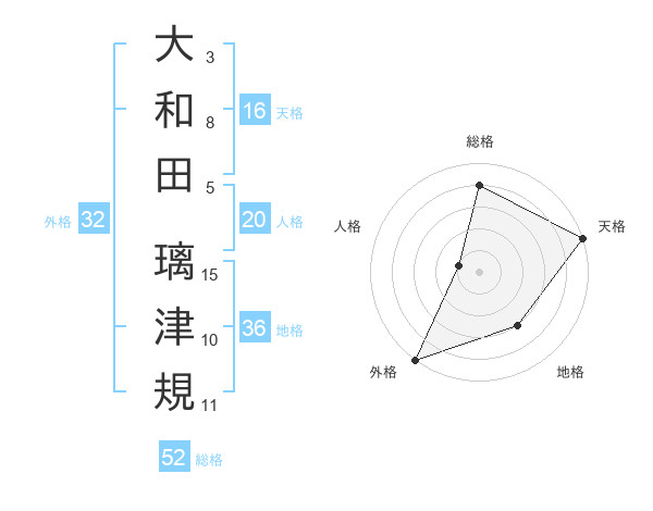大和田 璃津規さんを姓名の画数から五運を鑑定