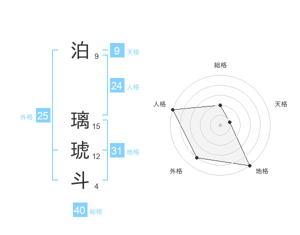 泊 璃琥斗さんを姓名の画数から五運を鑑定