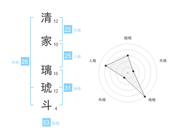 清家 璃琥斗さんを姓名の画数から五運を鑑定