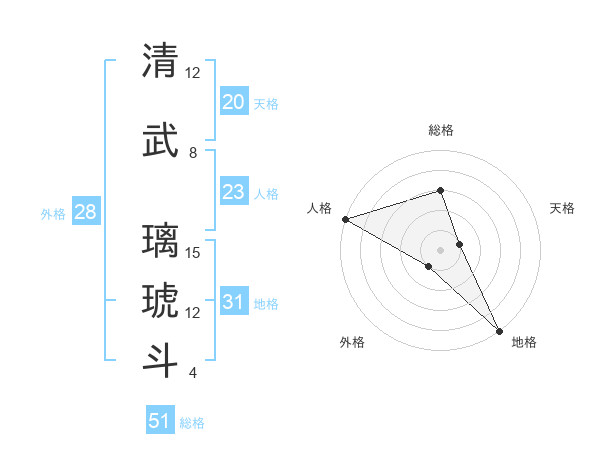 清武 璃琥斗さんの総格は51画の3点!