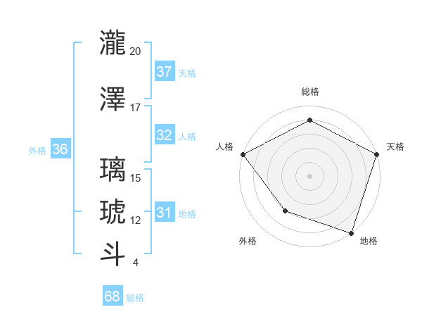 瀧澤 璃琥斗さんの天格は37画の5点!