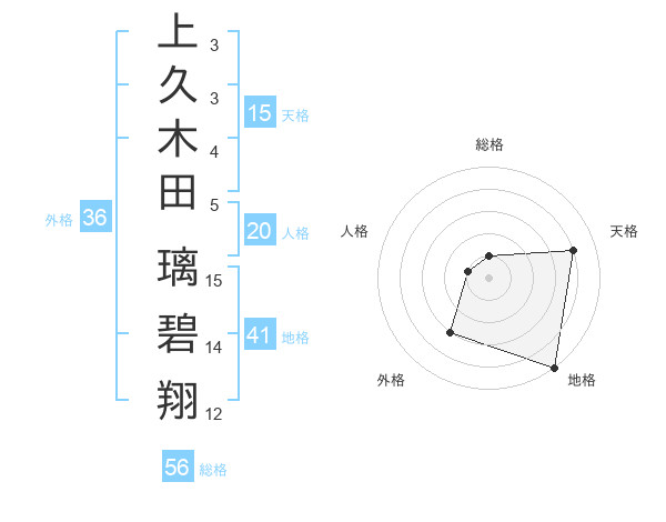 上久木田 璃碧翔さんを姓名の画数から五運を鑑定