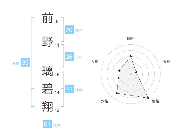 前野 璃碧翔さんの総格は61画の3点