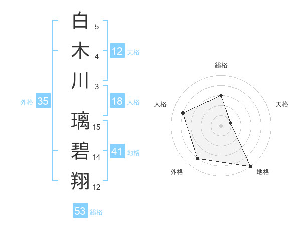 白木川 璃碧翔さんの総格は53画の3点