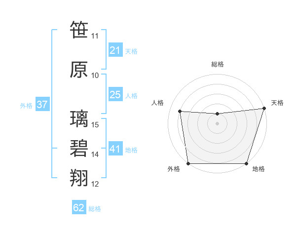 笹原 璃碧翔さんの天格は21画の5点!