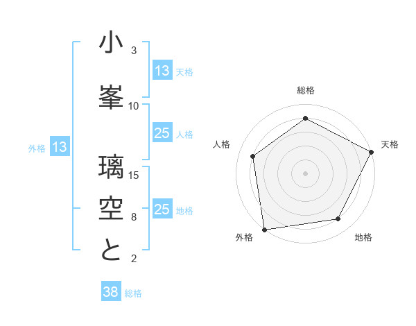 小峯 璃空とさんを姓名の画数から五運を鑑定