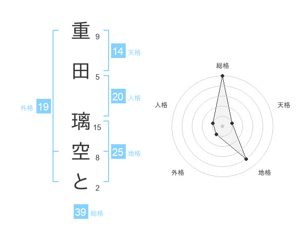 重田 璃空とさんを姓名の画数から五運を鑑定