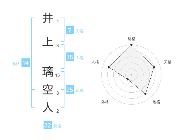 井上 璃空人さんの地格は25画の4点!