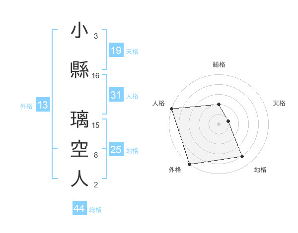 小縣 璃空人さんを姓名の画数から五運を鑑定