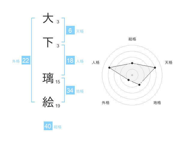 大下 璃絵さんを姓名の画数から五運を鑑定