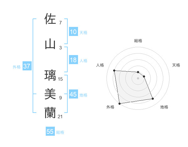 佐山 璃美蘭さんの外格は37画の5点!
