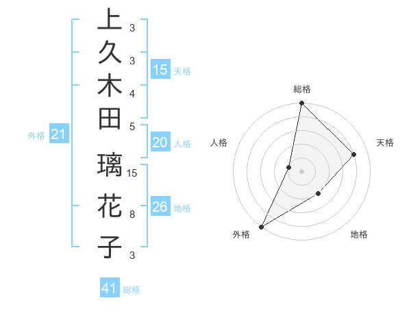 上久木田 璃花子さんを姓名の画数から五運を鑑定