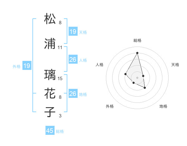 松浦 璃花子さんの天格は19画の1点!