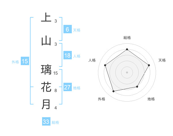 上山 璃花月さんを姓名の画数から五運を鑑定