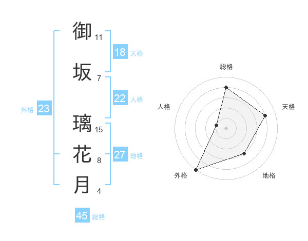 御坂 璃花月さんを姓名の画数から五運を鑑定