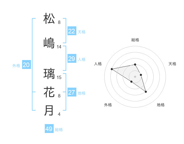 松嶋 璃花月さんの総格は49画の2点!