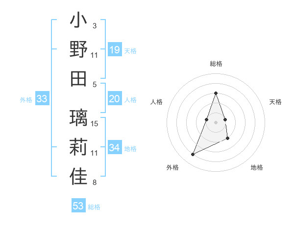 小野田 璃莉佳さんを姓名の画数から五運を鑑定