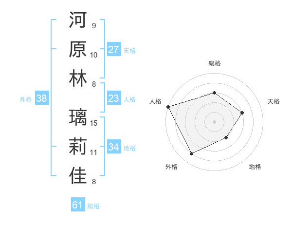 河原林 璃莉佳さんを姓名の画数から五運を鑑定