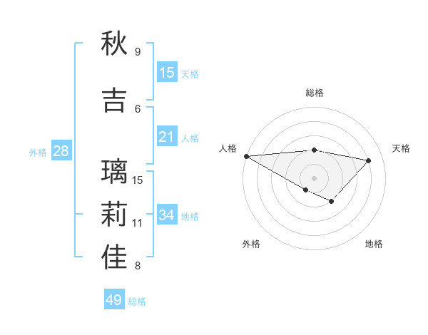 秋吉 璃莉佳さんを姓名の画数から五運を鑑定