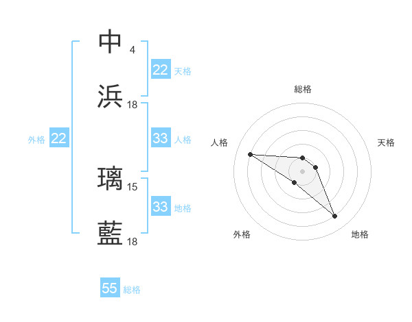 中浜 璃藍さんを姓名の画数から五運を鑑定