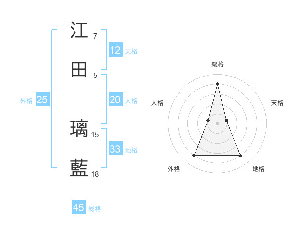 江田 璃藍さんを姓名の画数から五運を鑑定