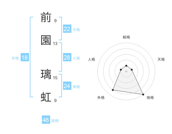 前園 璃虹さんを姓名の画数から五運を鑑定