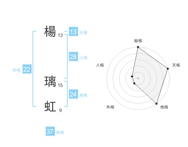 楊 璃虹さんの総格は37画の5点!
