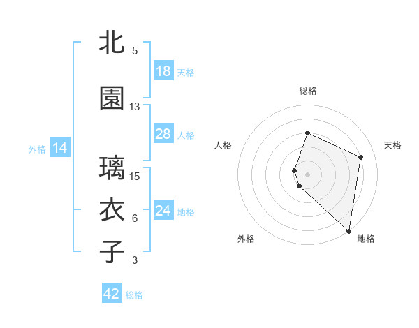 北園 璃衣子さんを姓名の画数から五運を鑑定