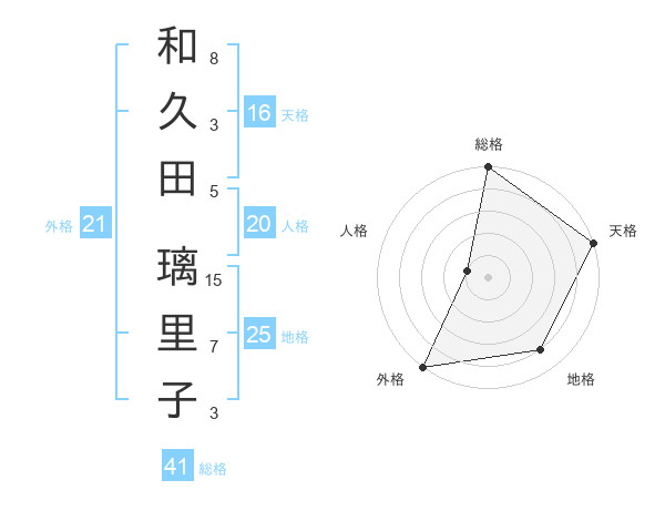 和久田 璃里子さんの天格は16画の5点!