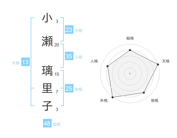小瀬 璃里子さんの外格は13画の5点!