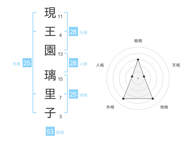 現王園 璃里子さんを姓名の画数から五運を鑑定