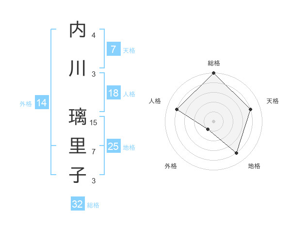 内川 璃里子さんの総格は32画の5点!