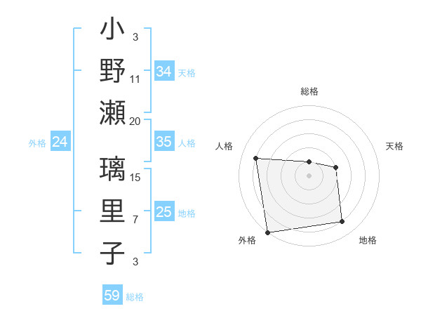 小野瀬 璃里子さんを姓名の画数から五運を鑑定