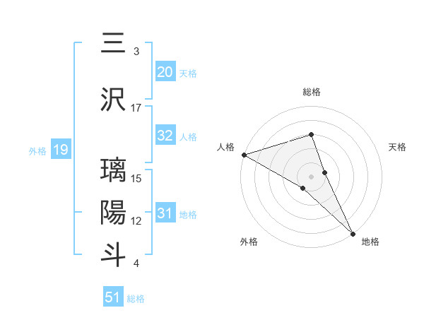 三沢 璃陽斗さんを姓名の画数から五運を鑑定