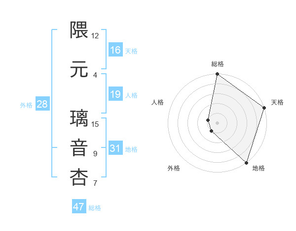 隈元 璃音杏さんの総格は47画の5点!
