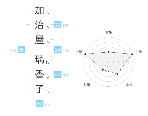 加治屋 璃香子さんの天格は23画の5点!