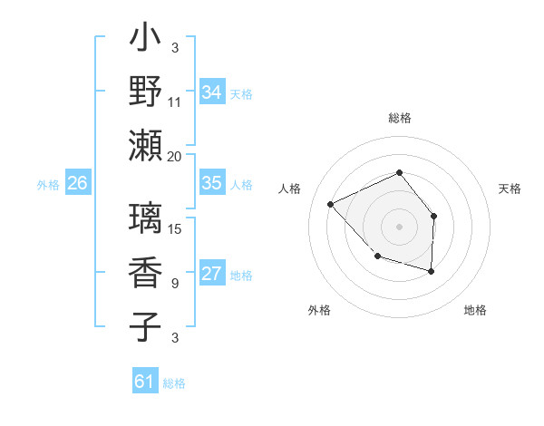 小野瀬 璃香子さんを姓名の画数から五運を鑑定
