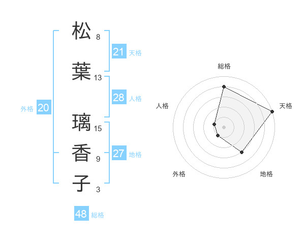 松葉 璃香子さんを姓名の画数から五運を鑑定