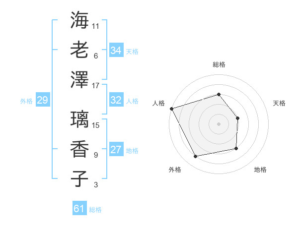海老澤 璃香子さんの総格は61画の3点!