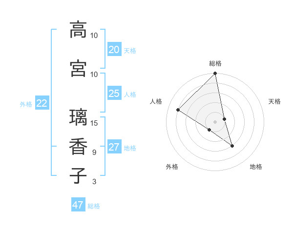 高宮 璃香子さんを姓名の画数から五運を鑑定